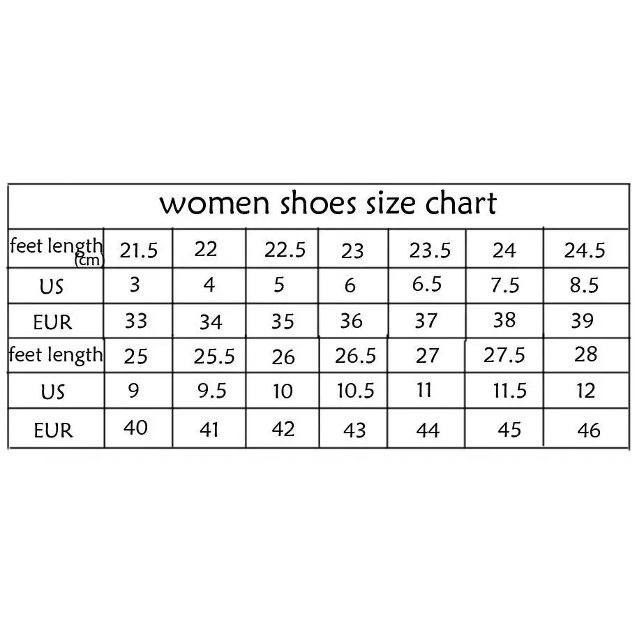| EU | US (Women) | US (Men) | UK | Foot Length (cm) |
