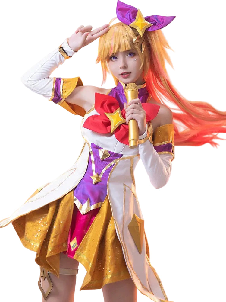 This Star Guardian Seraphine cosplay costume is inspired by her official Star Guardian appearance and focuses on a graceful silhouette, layered design, and celestial detailing. The outfit blends idol-like elegance with magical elements, creating a look that feels dreamy, expressive, and instantly recognizable. Flowing shapes and carefully placed accents give the costume a sense of movement and lightness, echoing Seraphine’s musical and emotional presence.