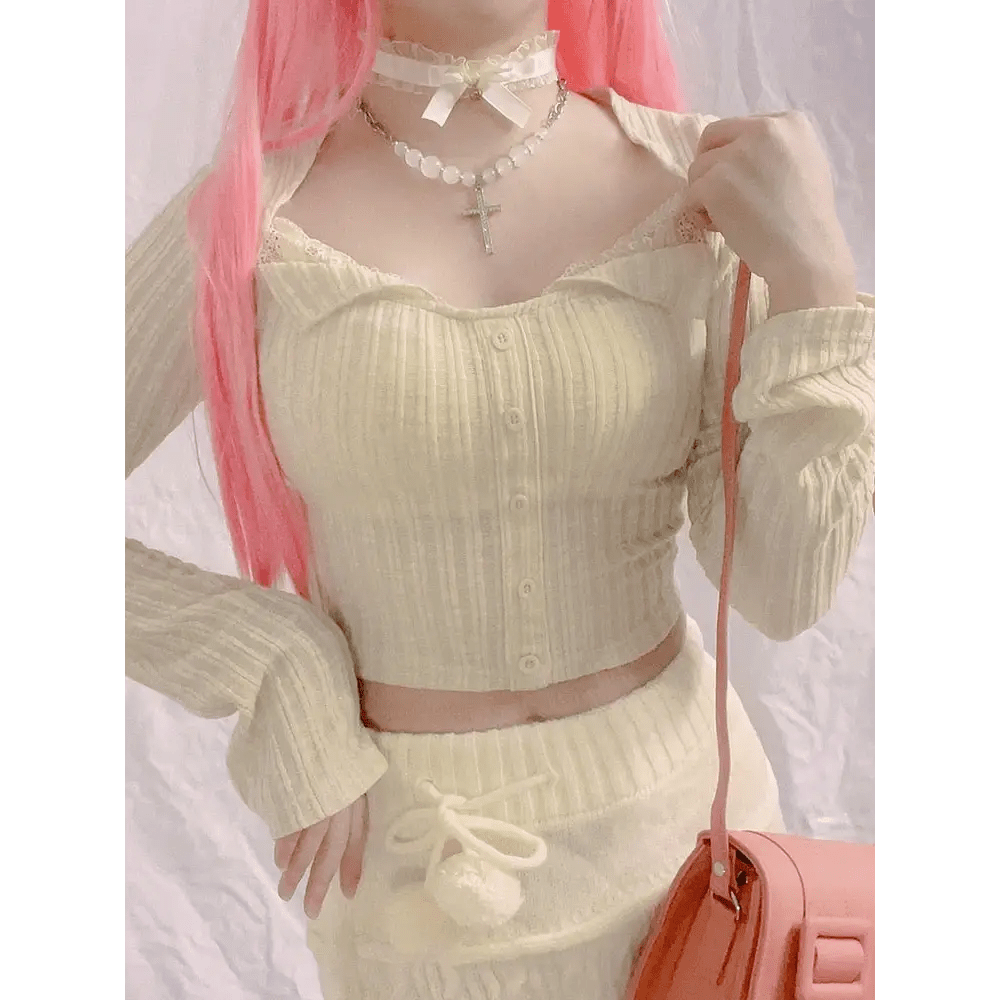 - So, if you want to add a touch of angelic and fairy charm to your wardrobe, this Cream Knit Cropped Sweater is definitely a must-have!