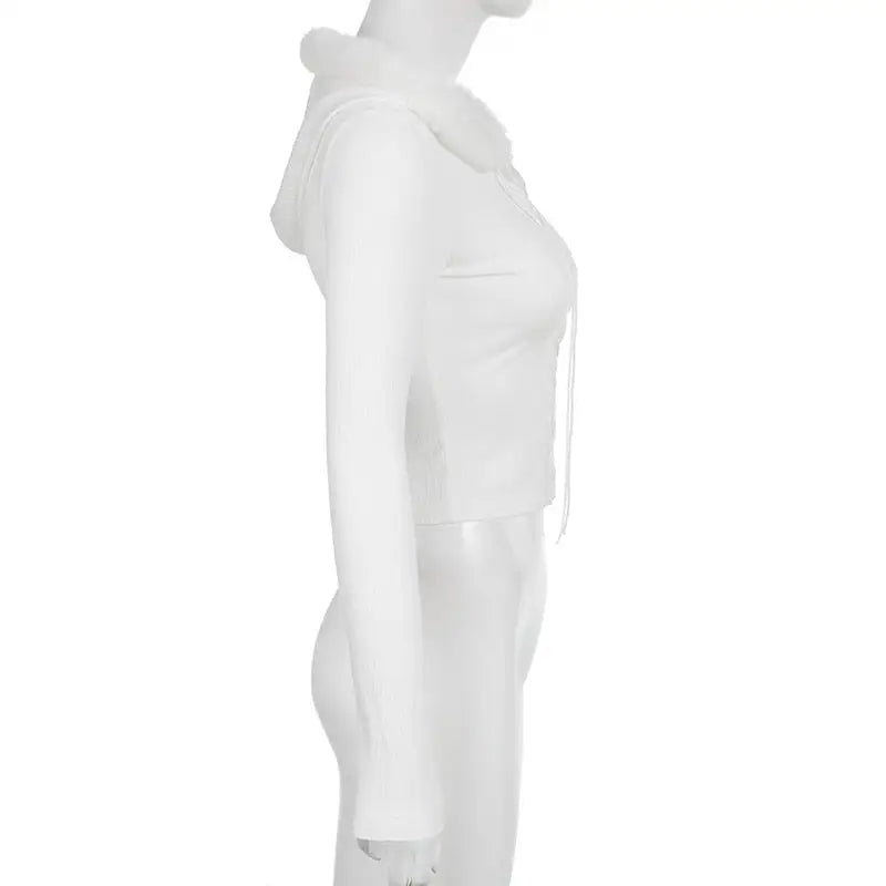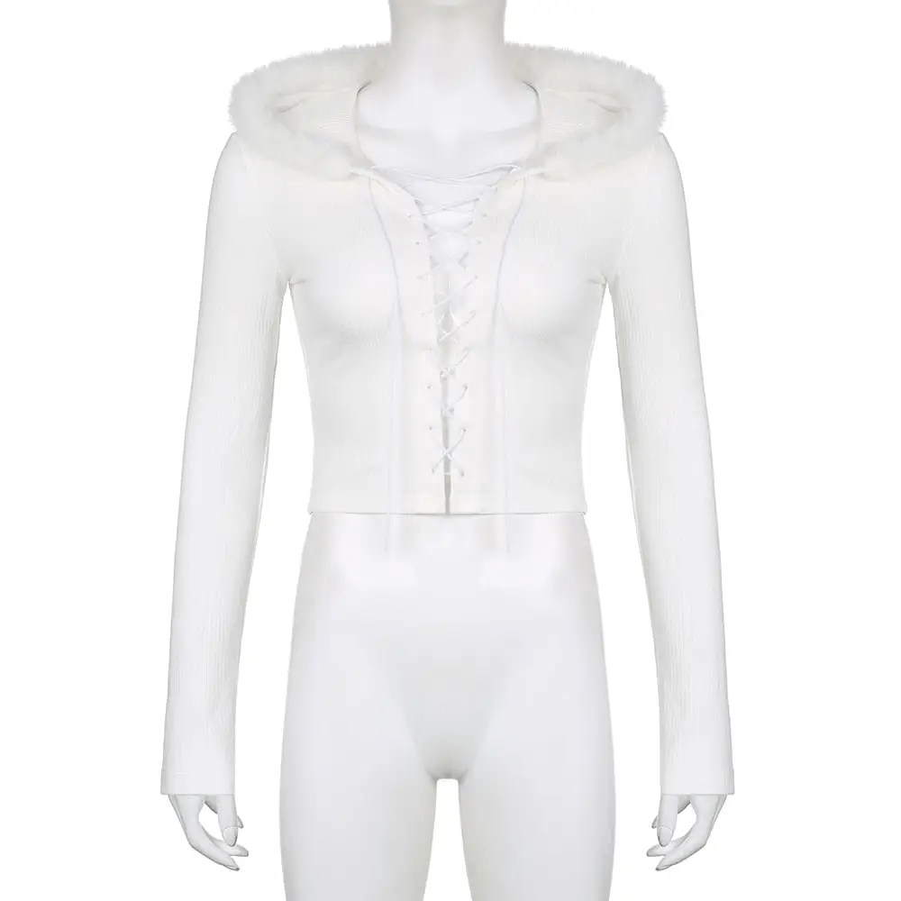 - So, if you want to add a touch of angelic and fairy charm to your wardrobe, this Lace Up Fur Hooded Cardigan is definitely a must-have!