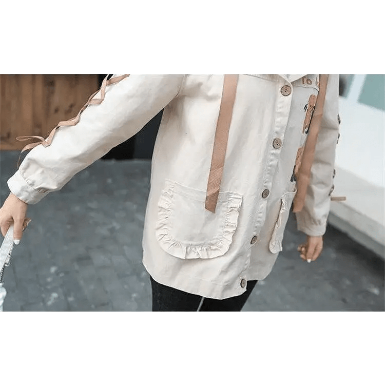 - Youthful embellishments like corset lace-up sleeves, sweet buttons, hand embroidery, and a charming hood add to its adorable appeal.