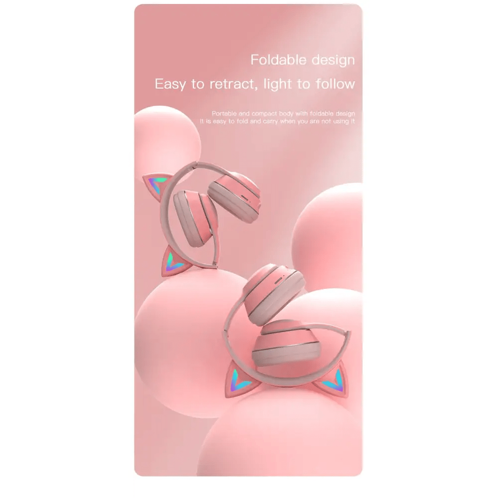 Kawaii Cat Ear Headset with Light-Up Paw Print Design