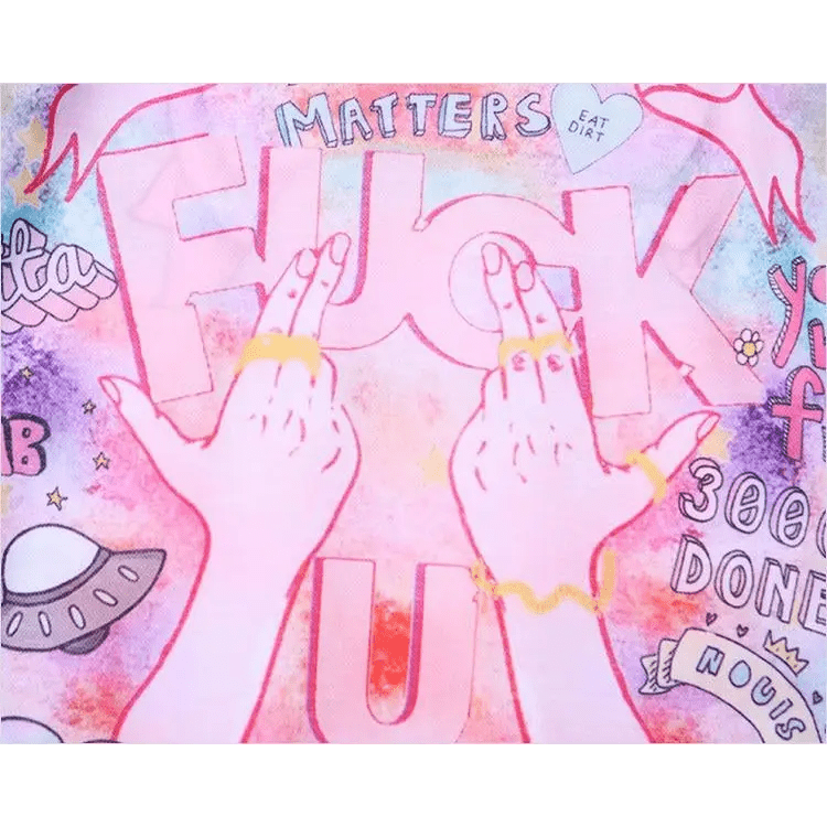 - With the word "FUCK" right on the front, it's the perfect contrast of cheeky aggression and sweet kawaii girly-girlness!