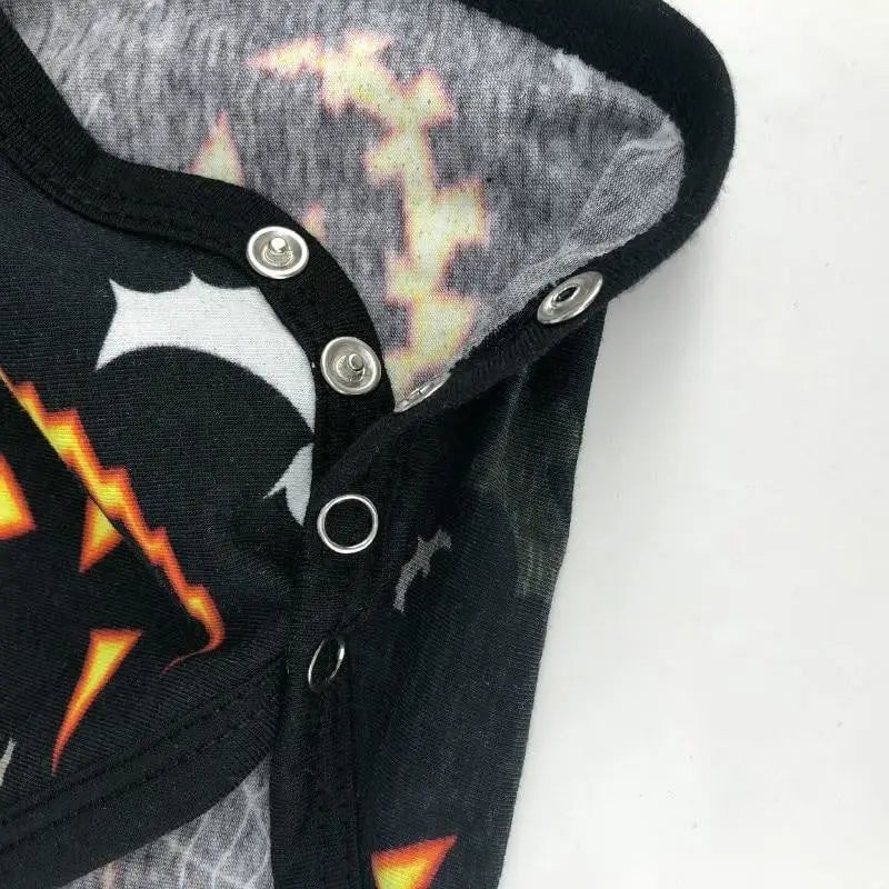 - The vibrant Halloween-inspired print features adorable jack-o-lanterns, bats, cobwebs, and moons, adding a touch of spooky fun to your outfit.