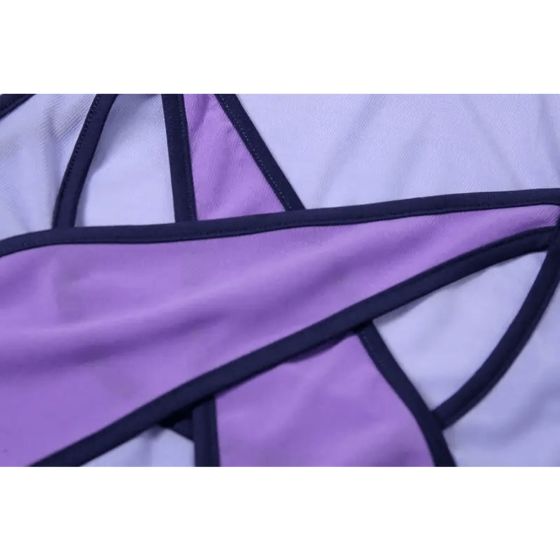 - Choose from purple, red, or blue in this stunning bathing suit!
