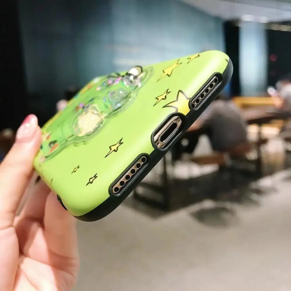 Kawaii Green Dinosaur Apple iPhone Case with Glitter and Stars