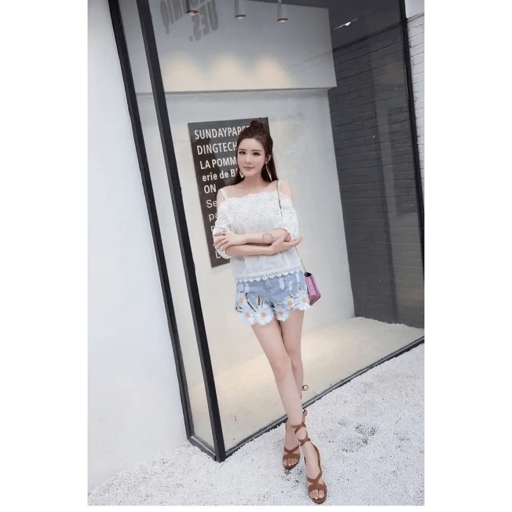 - These full denim daisy shorts are fit for a true pastel princess this summer!