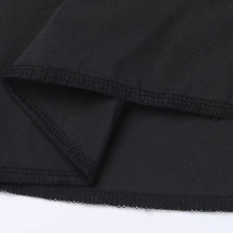 - The outfit features a black satin crop top and mini skirt adorned with beautiful pink, Japanese-style embroidery.