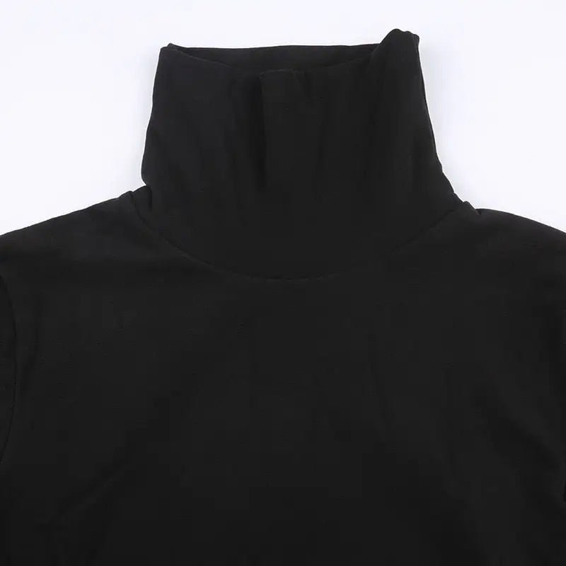 - Crafted from luxurious black velvet, this dress features a high turtle neck, long sleeves with white fur cuffs, and a mini length with a white fur hemline.