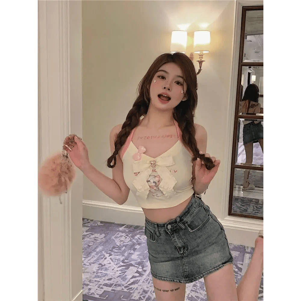 Introducing the purr-fect fashion find: the Serendipity Kitten Tank! Get ready to unleash your inner retro diva with this stunning pale yellow halter top that'll make you the talk of the town. Here's why this adorable tank is a must-have: