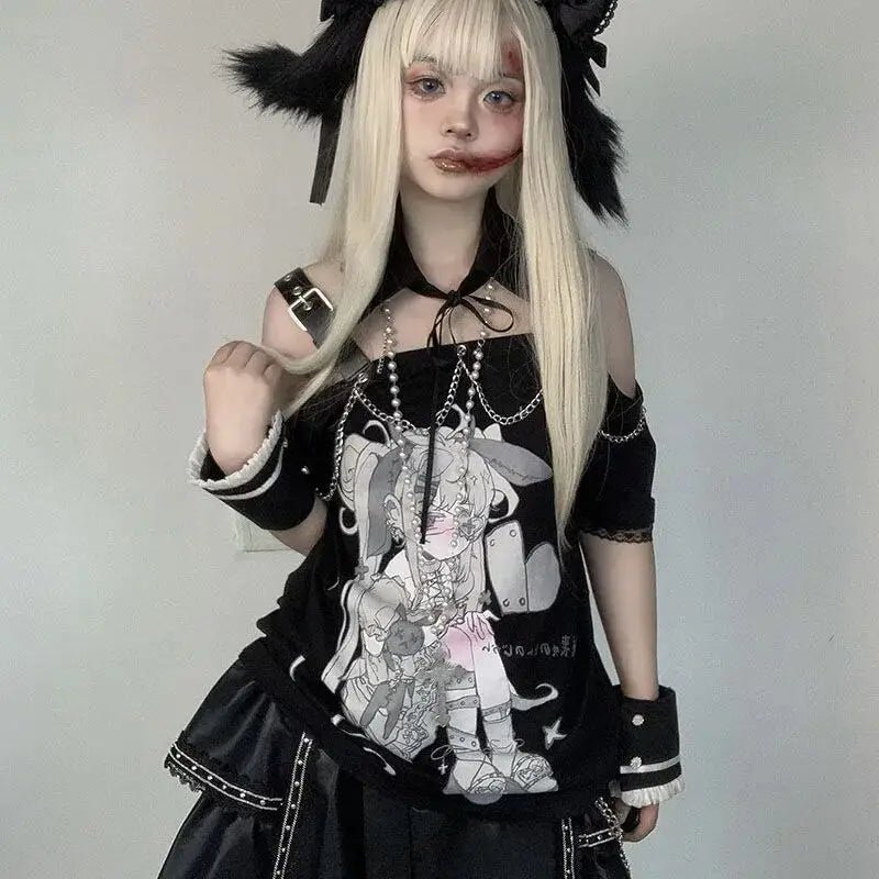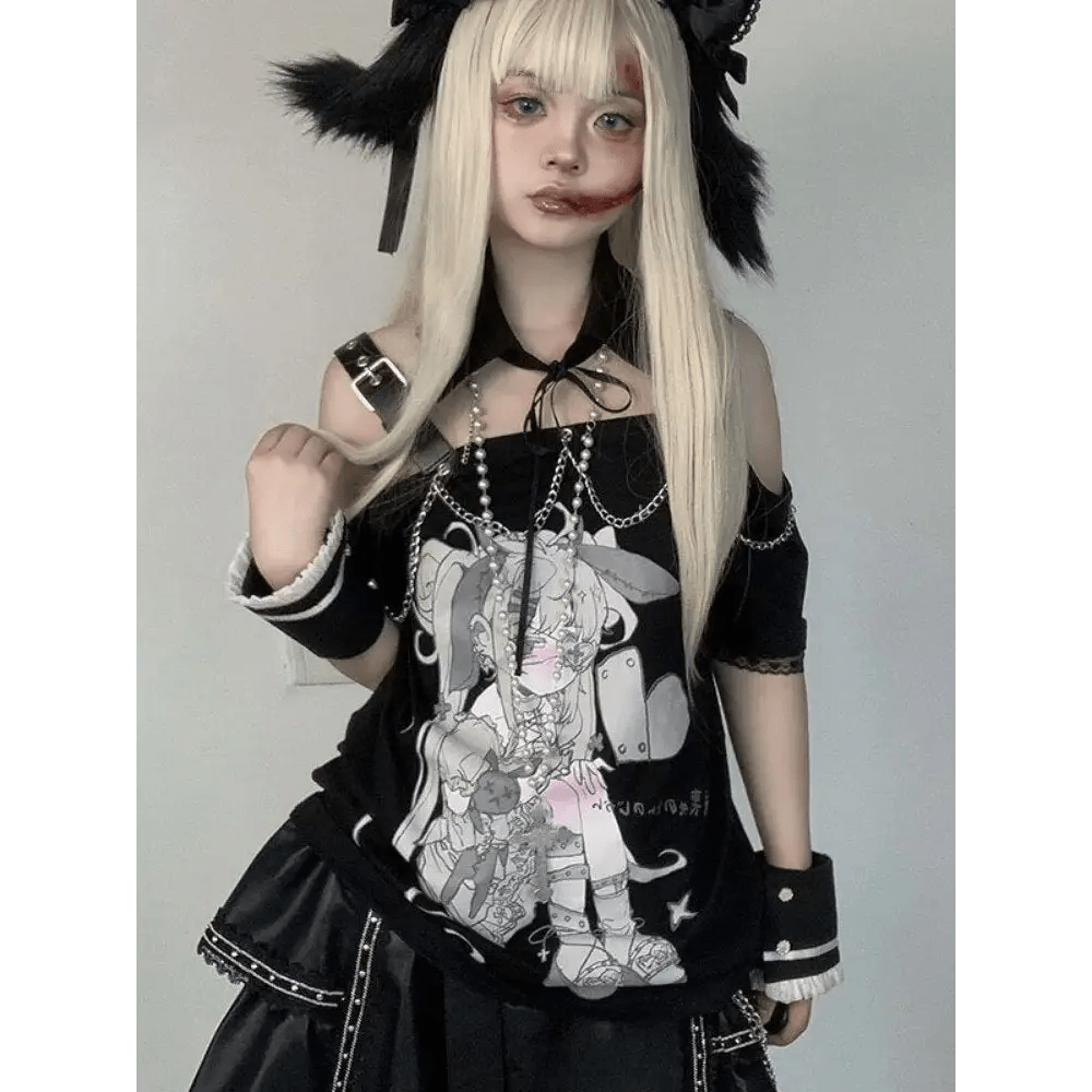 Pastel Menhera Off The Shoulder Tee for Kawaii Anime Lovers