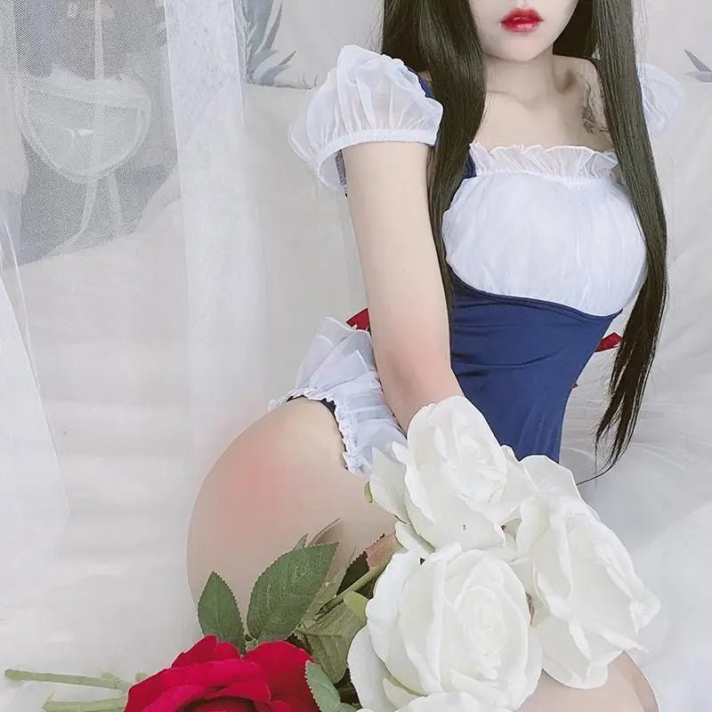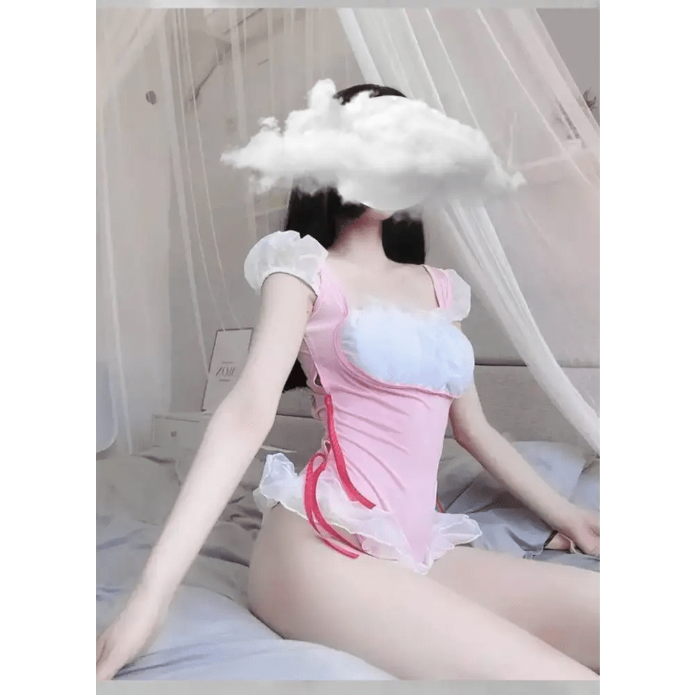 Frilly Pink Maid Onesie with Open-Crotch Romper Design