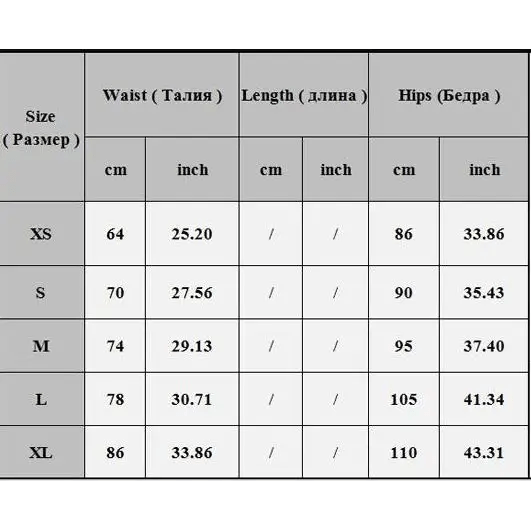 | Size | Height (cm) | Chest (cm) | Waist (cm) | Hips (cm) |