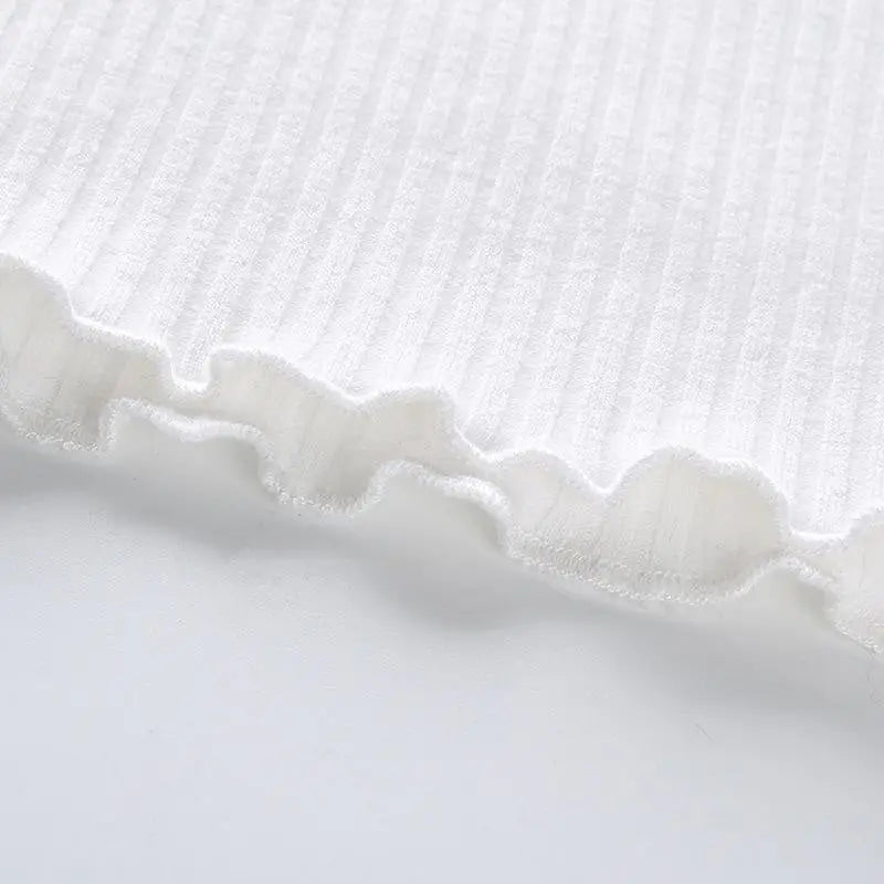 Bright White Knit Crop Top with Adorable Hand-Embroidered Eyes