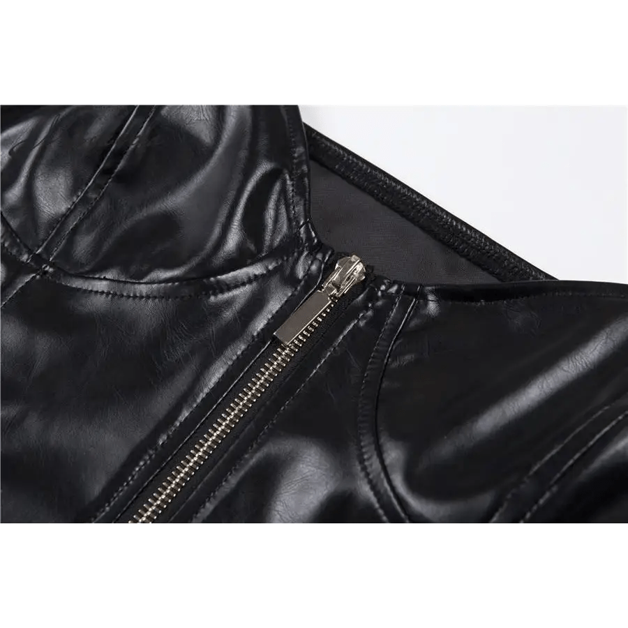 Seductive Black Latex Camisole with Gold Zipper and Built-In Cups