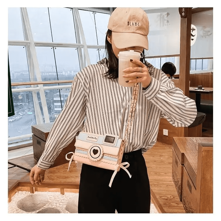 - This perfectly kawaii harajuku japan inspired pink retro camera shaped 3D purse is a must have for any kawaii cutie.