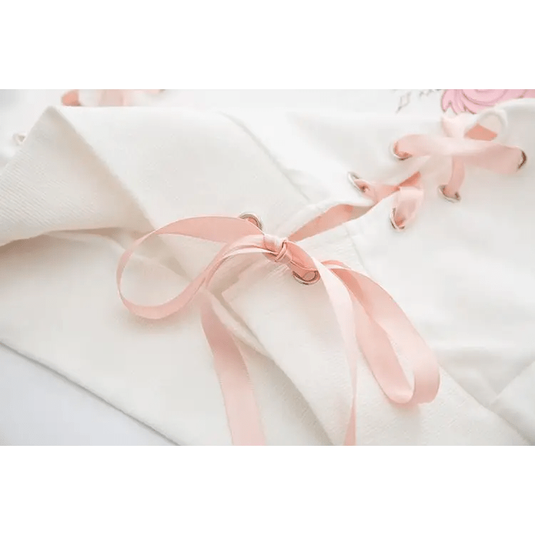 - Featuring the cutest little girl with pink hair, and corset laces along the bottom for extra charm!