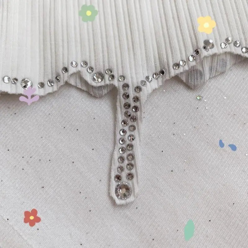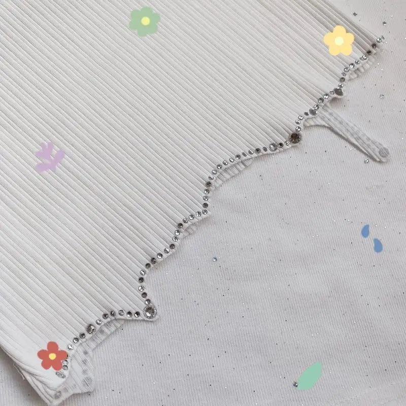 - Made of the softest and most delightful knitted fabric, with quality rhinestones all along the dripping edge.