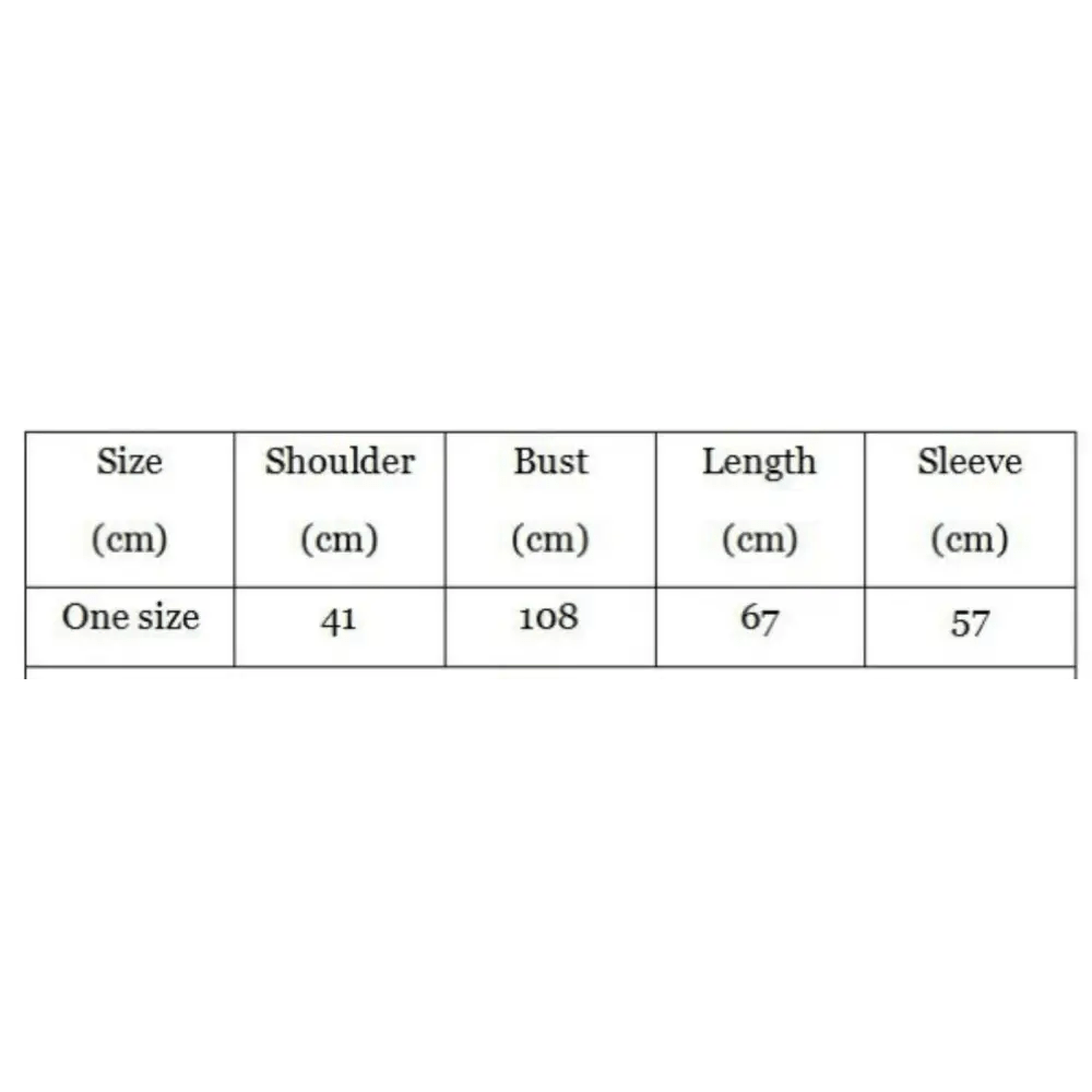 | Size | Height (cm) | Bust/Chest (cm) | Waist (cm) | Hips (cm) |
