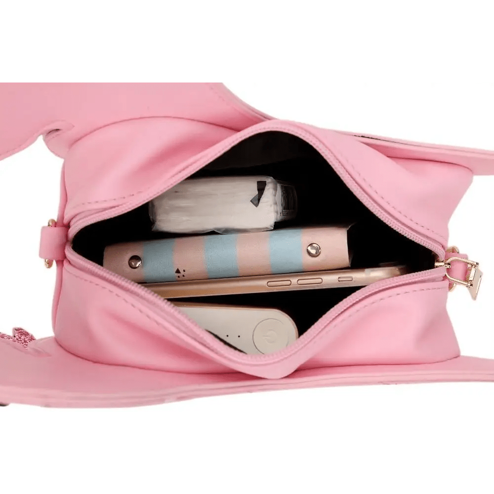 - With a long gold chain shoulder strap, this cute purse is sweet and functional!