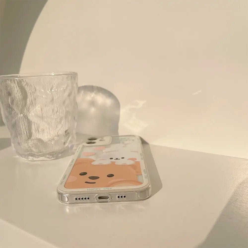 Kawaii Teddy Bear and Bunny Rabbit iPhone Case with Happy Every Day Design