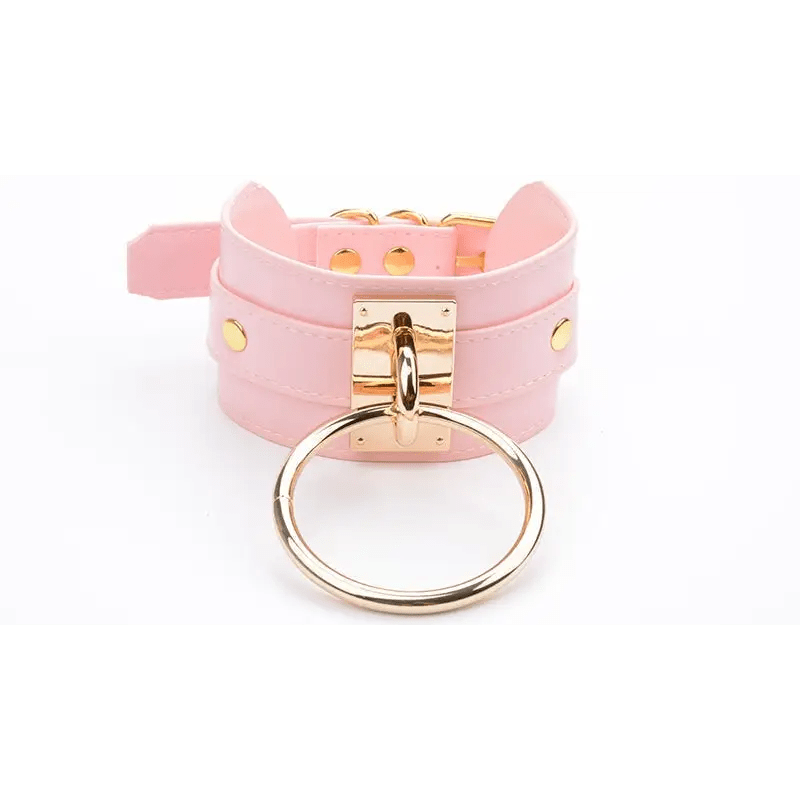- This gorgeous vegan leather classic O-Ring choker necklace has quality silver or gold hardware, belted adjustable buckles, and screams "I'm an edgy kawaii princess"!