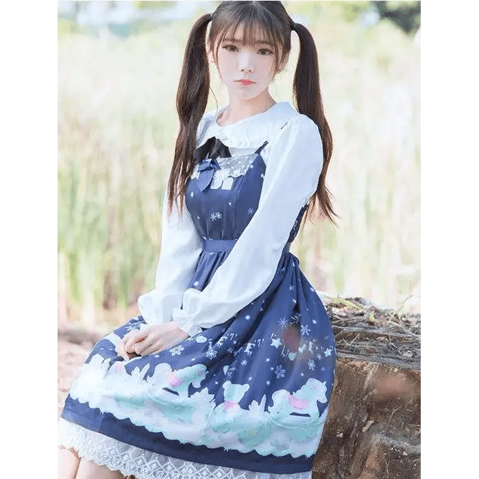- This sweet and innocent baby girl style lolita dress features pastel snowflakes and cute toy print! 💖